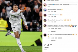 姆巴佩在赛后同社媒晒出自己进球后的庆祝照并配文:“渴望赢得更多!马德里前进!”